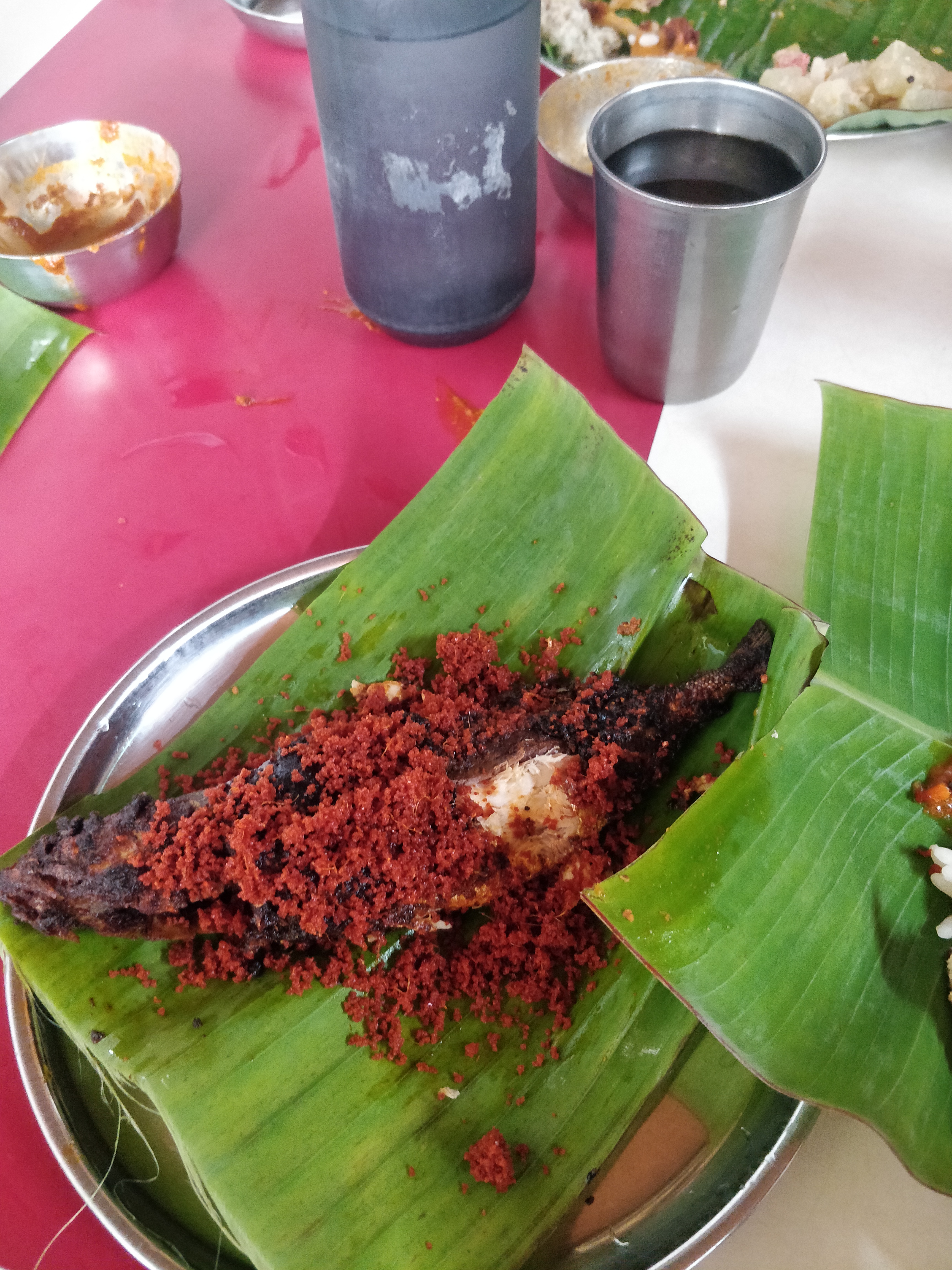 Wow, this was the best. The meals had fish curry, pickle, coconut thuvayal & unlimited rice. Along with it I also ordered a Bangda(Mackerel) coated with Mangalore masala dusted on top. The masala was really the icing on the cake, but tasted spicy đ I think it is a blend of coconut & dry red chilli powder.
