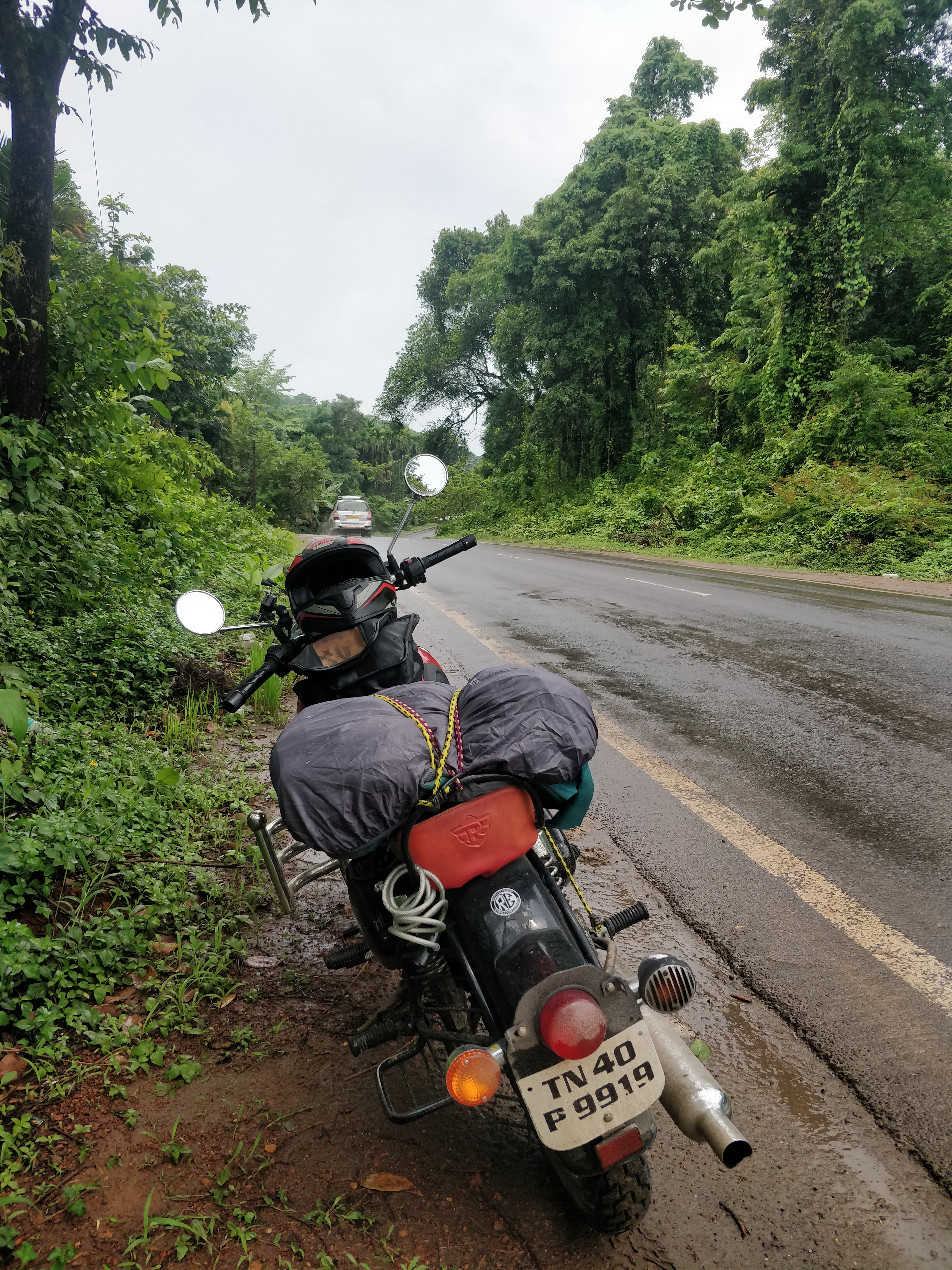 The roads after Hassan were bad, like really bad, it was 2 lane, 80% of the roads were under construction till I reached MLR. Given the SW monsoon, there were waterlogging & full of wet mud. But one thing that rejoiced me was Hassan kickstarted the western ghats. All throught the ghats section was an elephant crossing zone, it was fun to drive amongst these roads. There were inconsistent rains here and there, but fortunately I didnât get caught in any heavy spell. It was complete downhill & both sides were lush forest, the route went via Shakleshpur